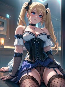 メスガキチャレンジで金髪ツインテール&ボンテージ衣装。 なかなかいい感じのキャラクターになったのでは。 リアルよりのモデルで作ったバージョンも。